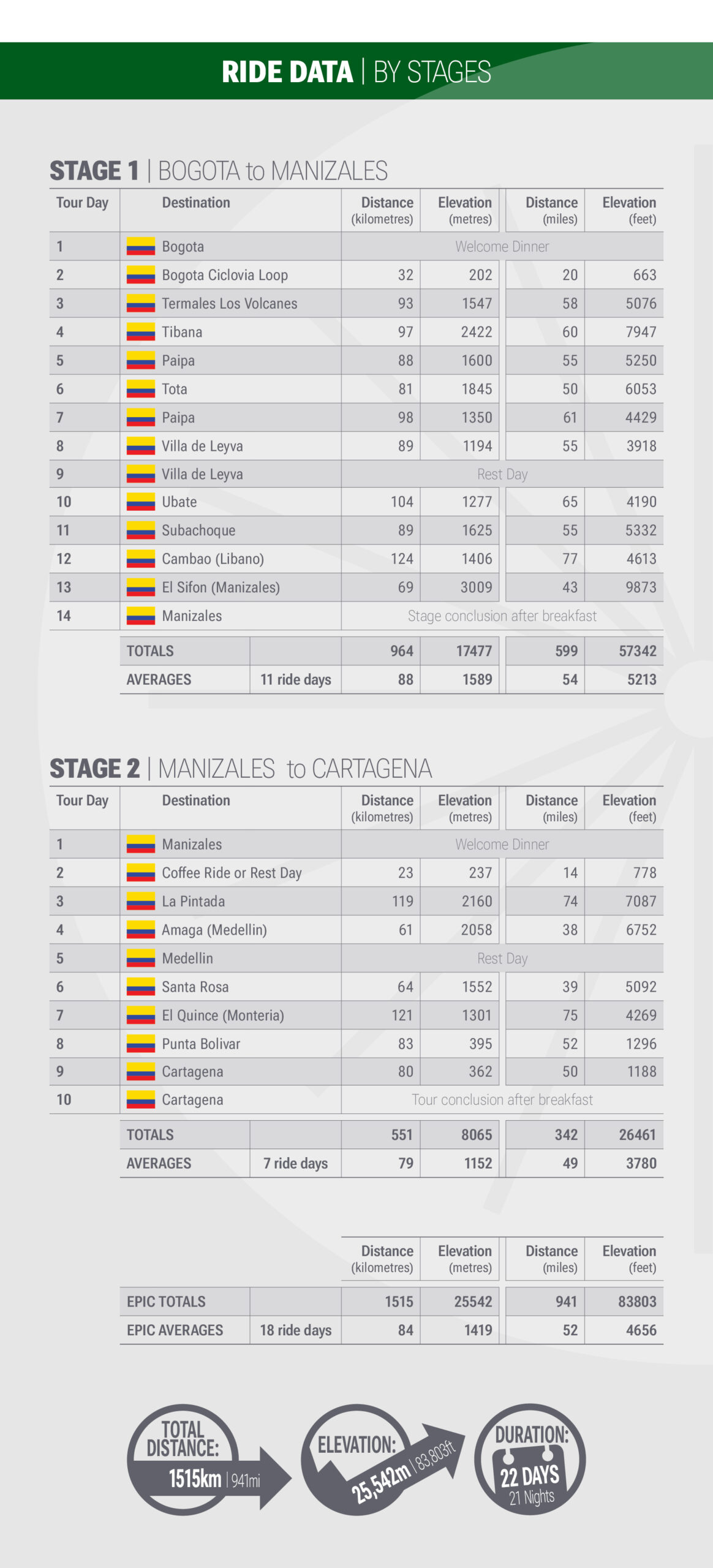 Join us on our inaugural cycling adventure through Colombia, a country that pulses with life, colour, and rhythm at every turn. From the high-energy streets of Bogotá to the colonial elegance of Cartagena, this journey reveals the full sweep of Colombia’s cultural and geographical diversity — soaring mountains, lush coffee plantations, and sun-drenched Caribbean coastlines. Along the way, you’ll meet warm, welcoming locals, savour traditional dishes, and experience the country’s infectious passion for cycling.