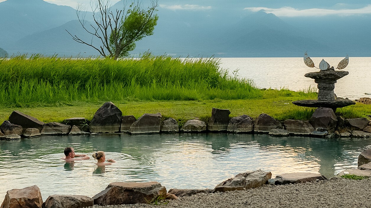 > Soak in natural onsens, surrounded by serene mountain views and the soothing sounds of nature